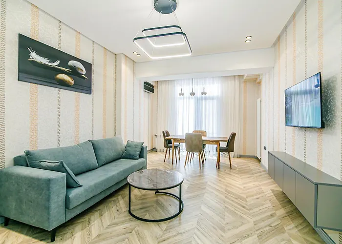 Das 100 m² große White Tower Apartment Baku liegt ca. 4 Kilometer vom Brunnenplatz entfernt sowie in unmittelbarer Nähe zu verschiedenen Sehenswürdigkeiten der Gegend. Das Apartment verfügt über eine Terrasse, von der aus die Gäste einen Küsten- Blick aufs Meer genießen können.